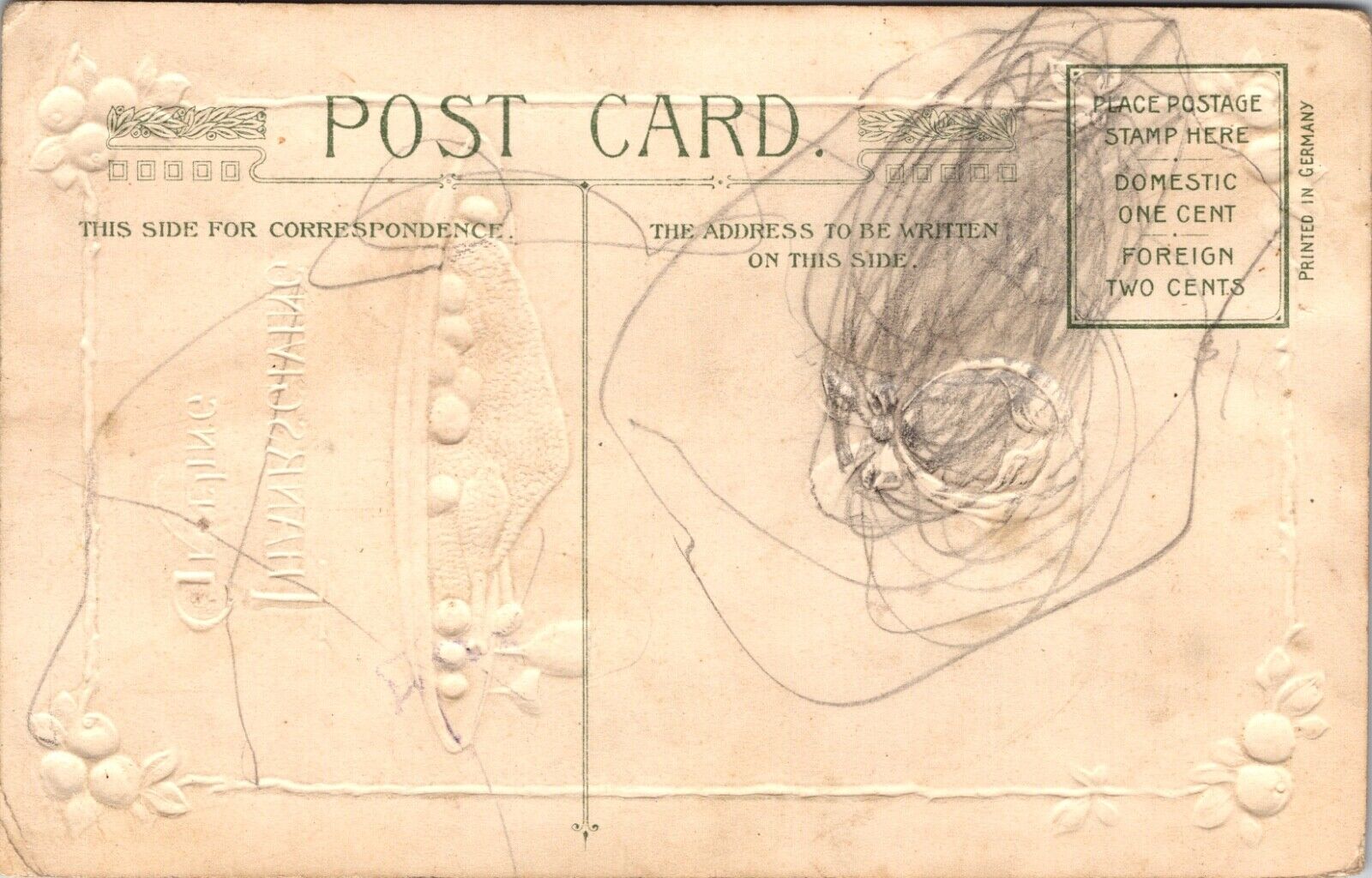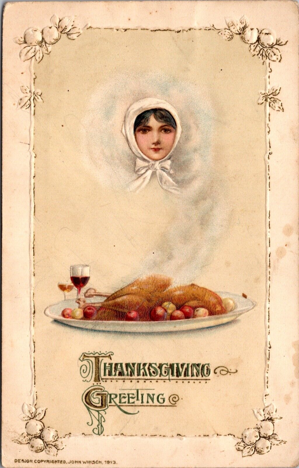 1913 John Winsch Thanksgiving Postcard Woman's Face in Smoke from Turkey Dinner