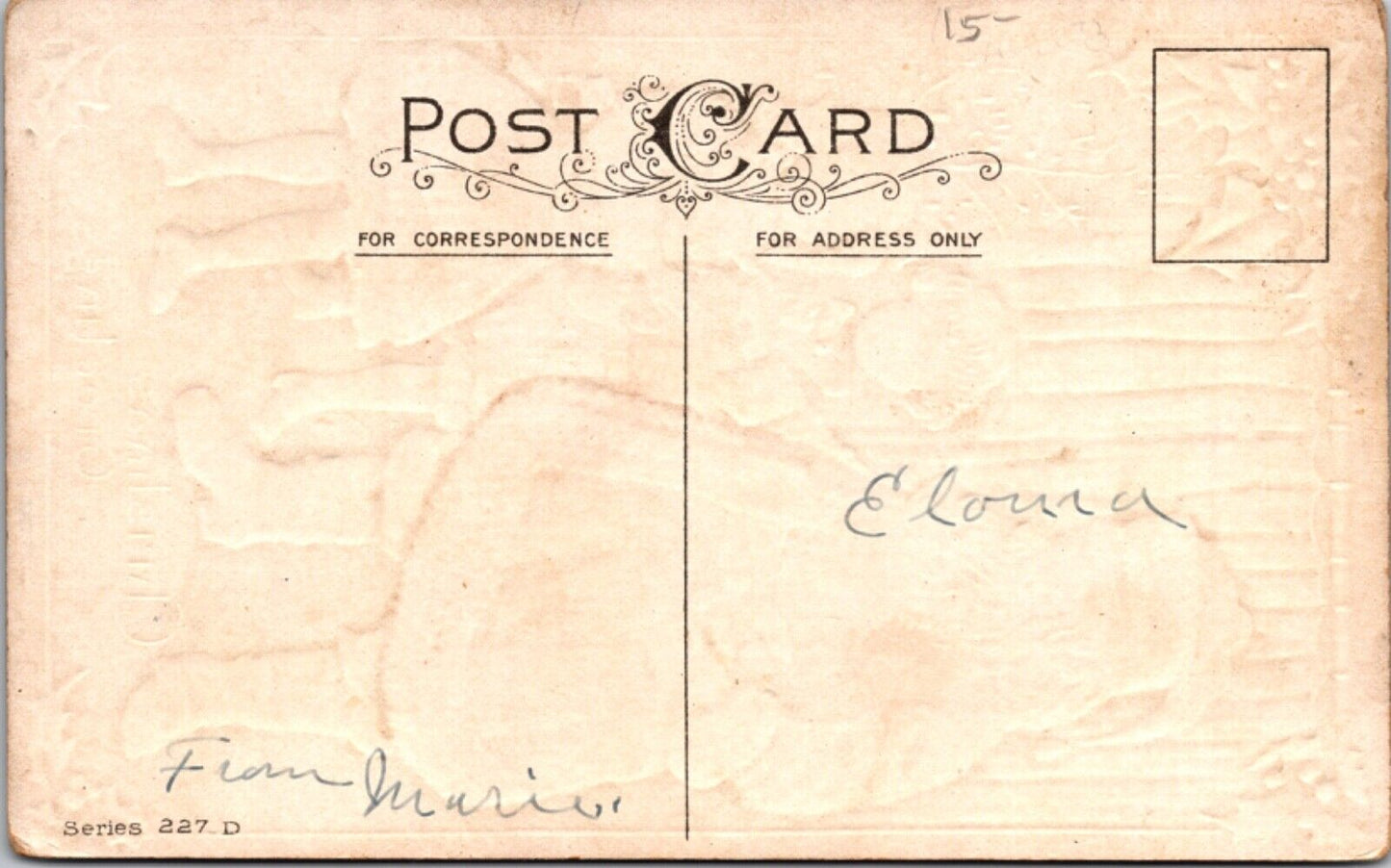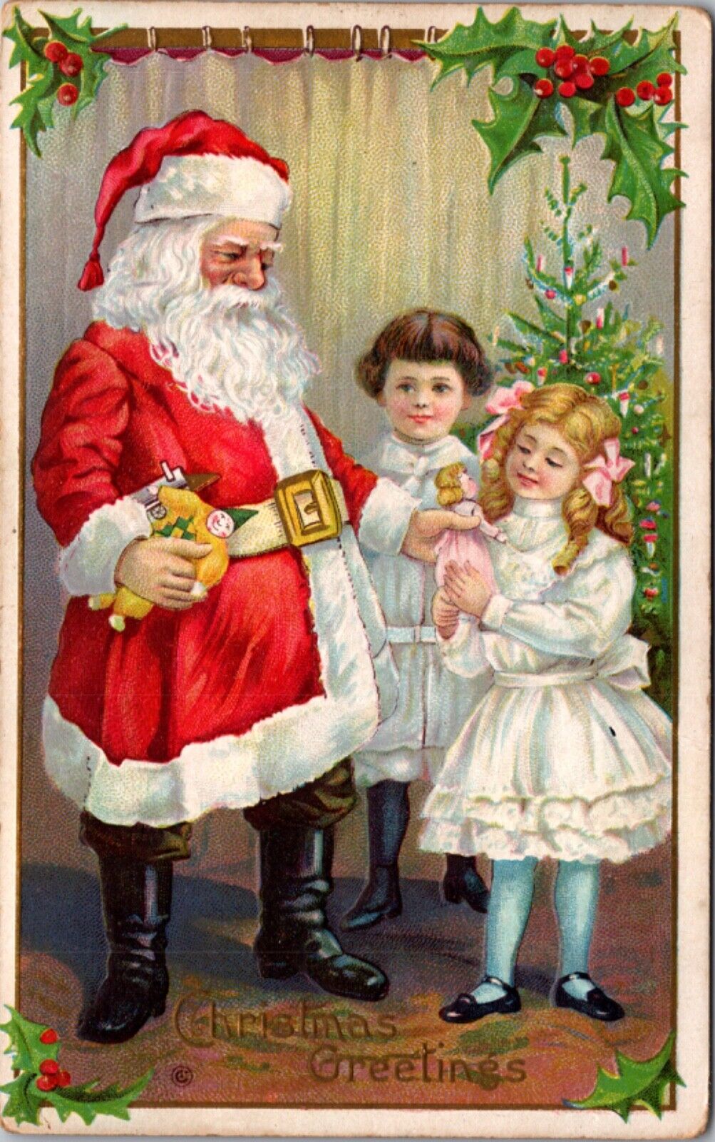 Christmas Postcard Santa Claus Handing Toys and Dolls To Young Children