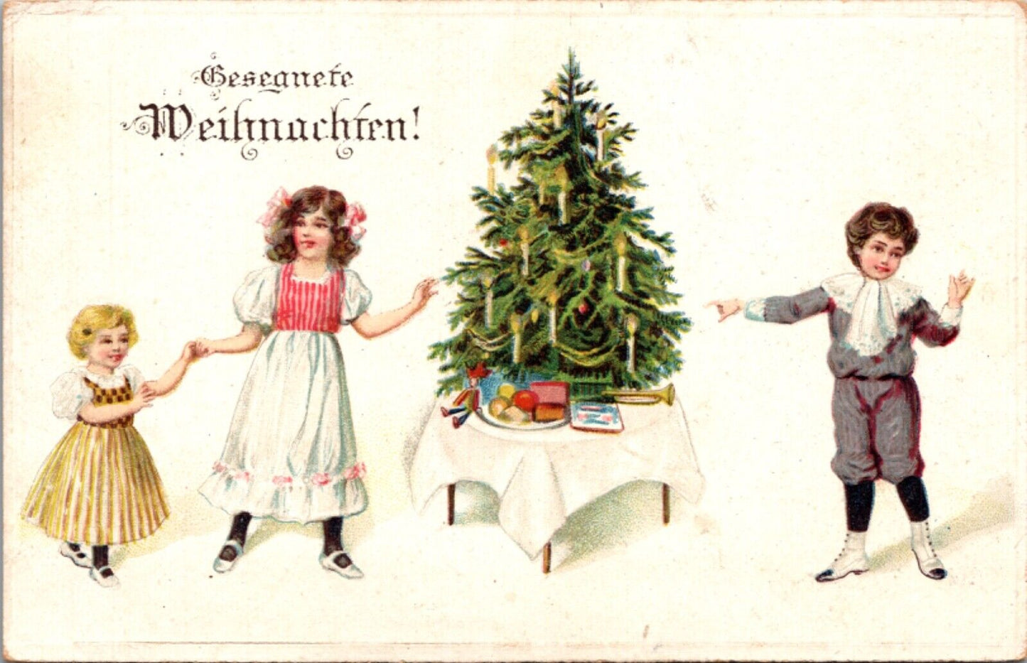 German Christmas PC Gesegnete Weihnachten Children Candlelit Tree Toys Gifts