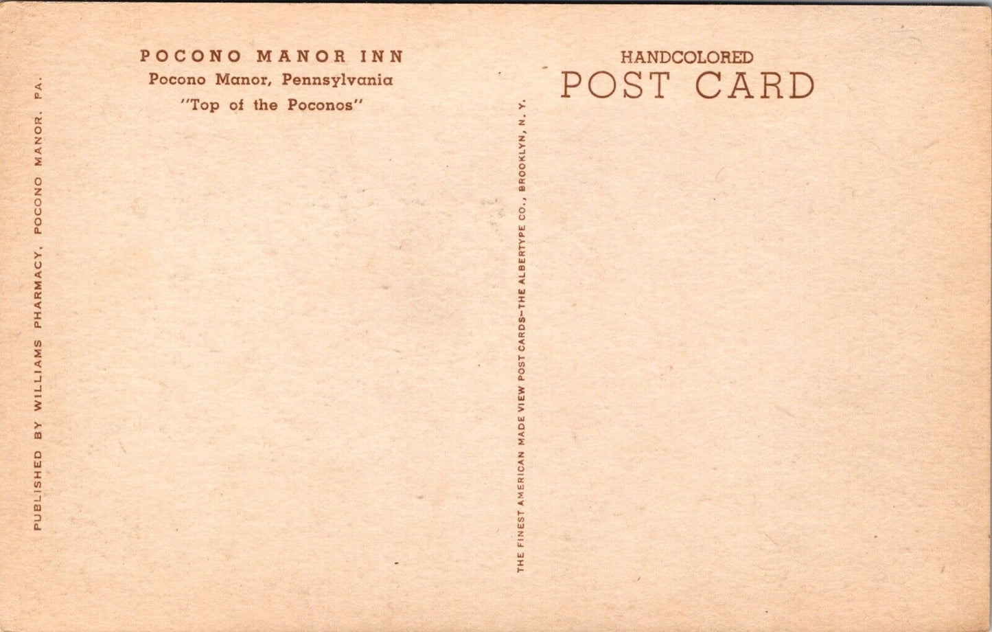 Hand Colored Postcard Pocono Manor Inn in Pocono Manor, Pennsylvania