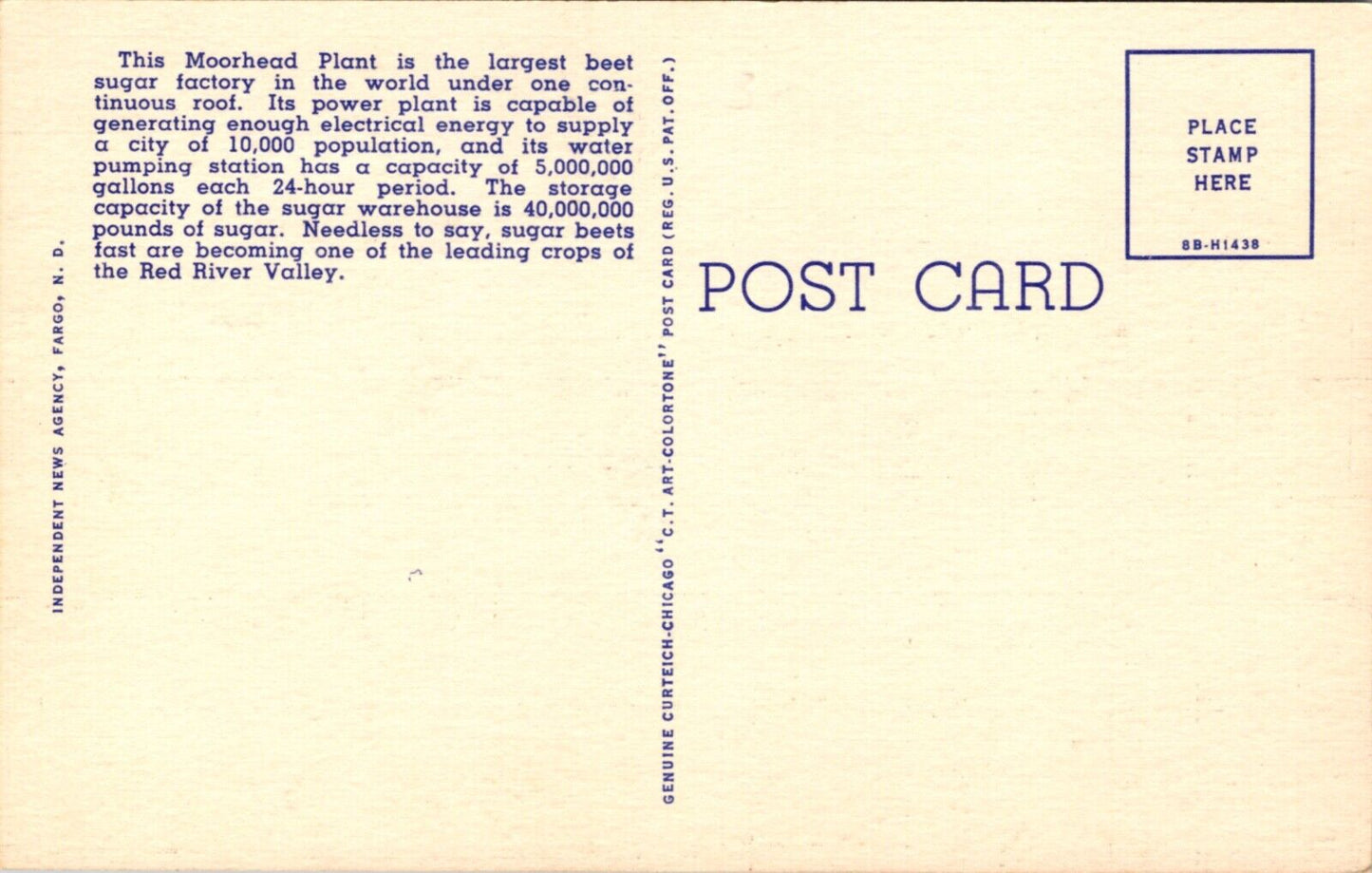 Linen Postcard American Crystal Sugar Company in Moorhead, Minnesota