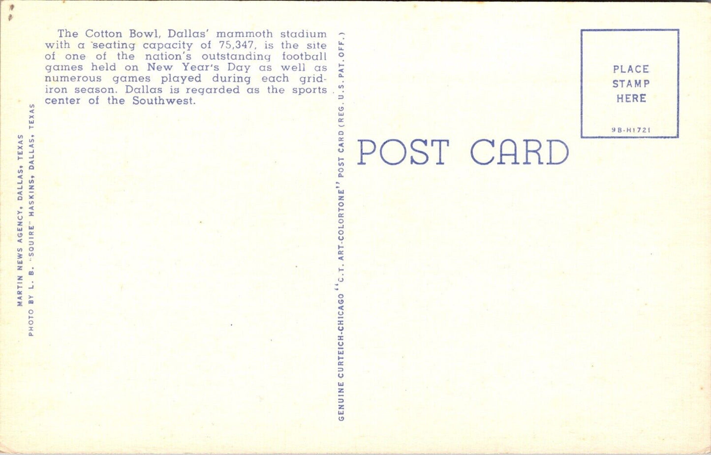 Linen Postcard Cotton Bowl in Dallas, Texas