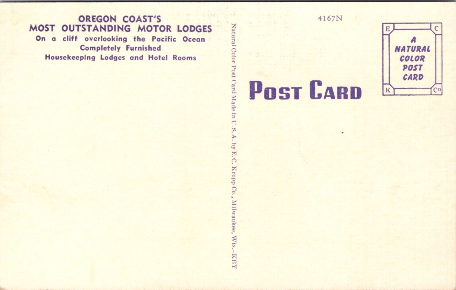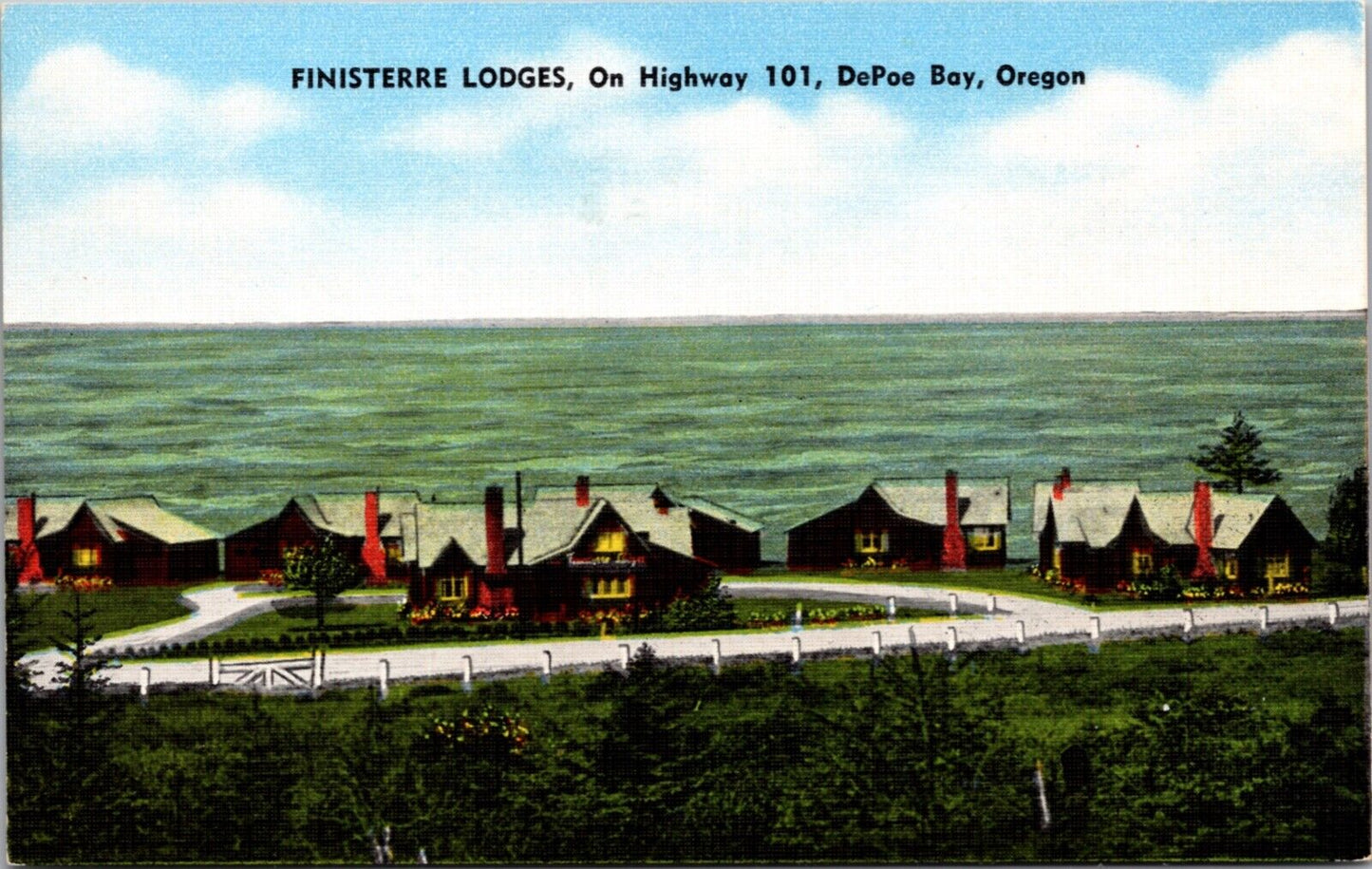 Linen Postcard Finisterre Lodges on Highway 101 in DePoe Bay, Oregon