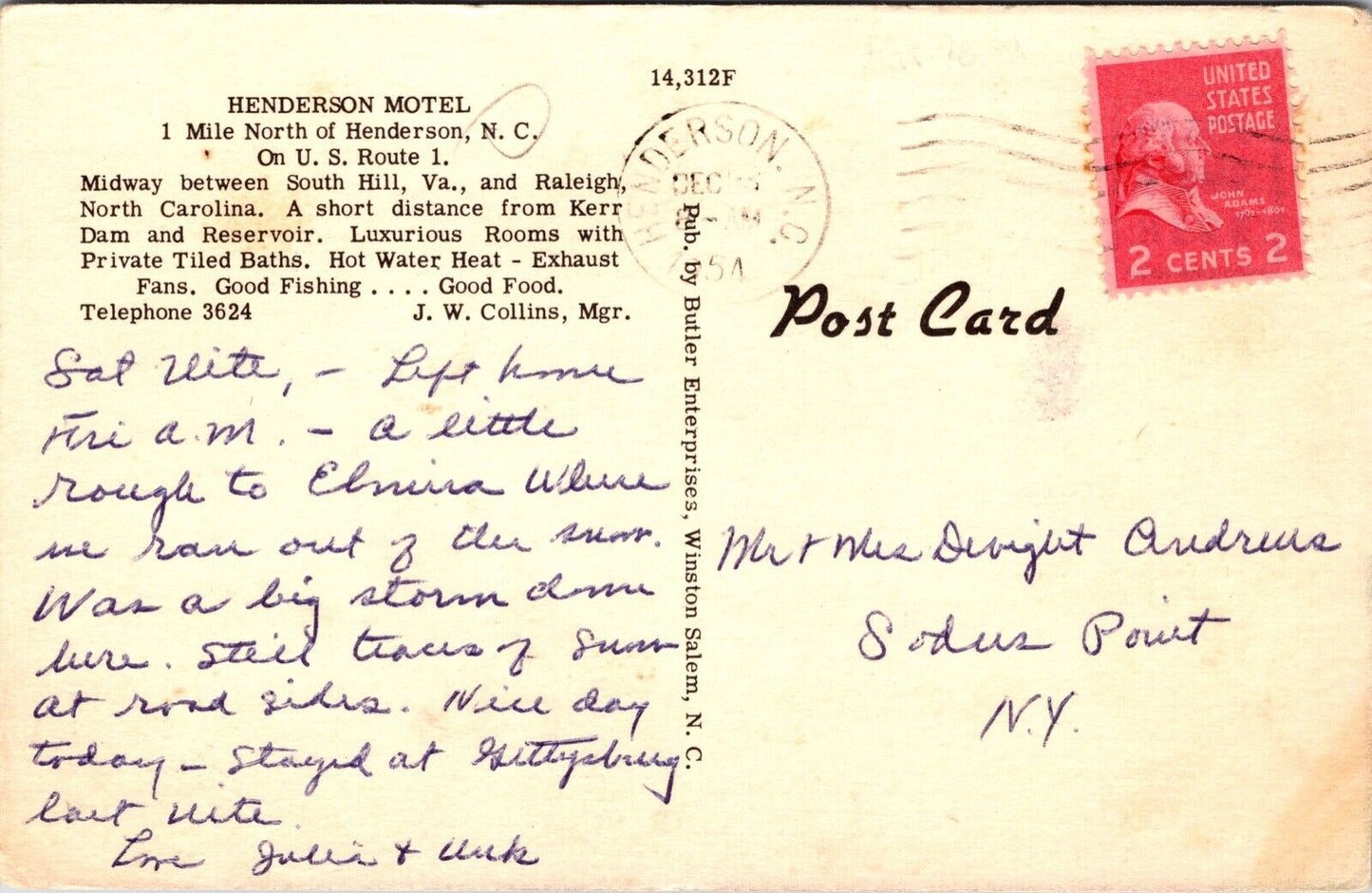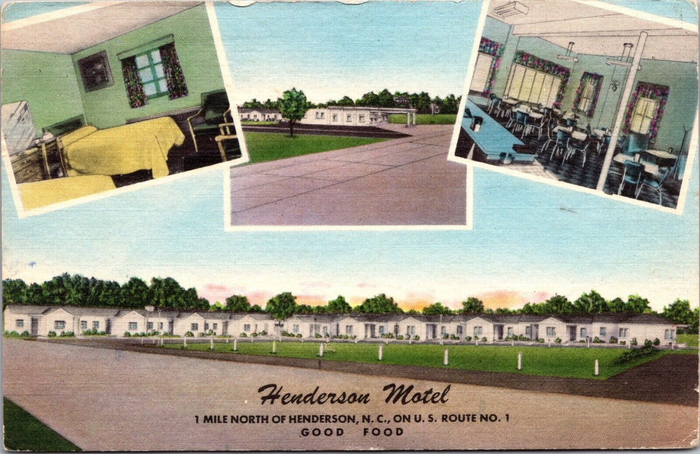 Linen Postcard Henderson Motel U.S. Route 1 in Henderson, North Carolina