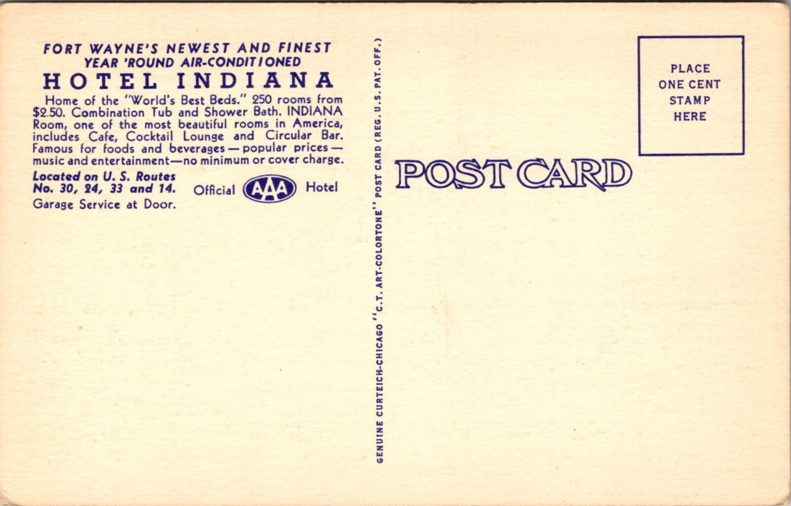 Linen Postcard Hotel Indiana in Fort Wayne, Indiana