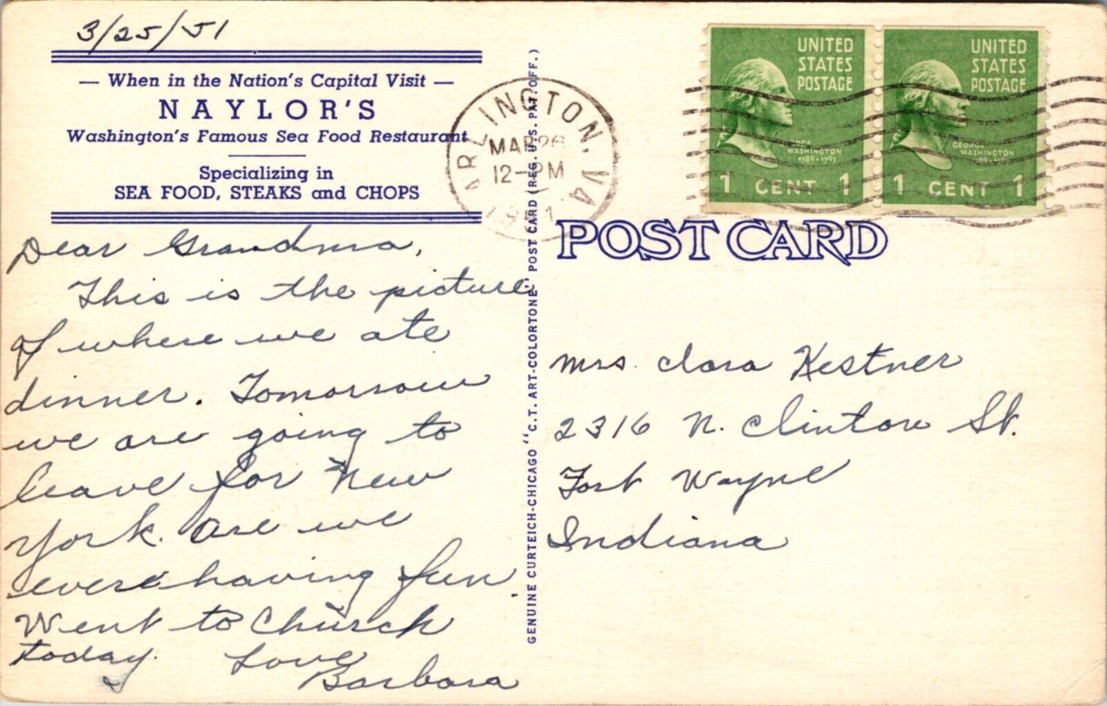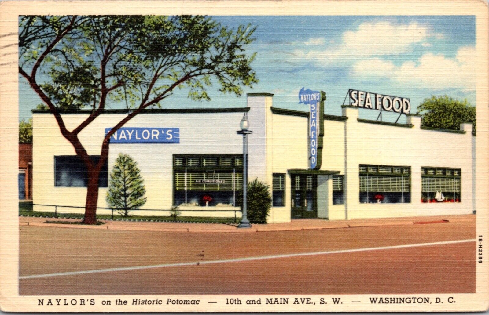 Linen Postcard Naylor's Seafood Restaurant 10th and Main Ave Washington D.C.