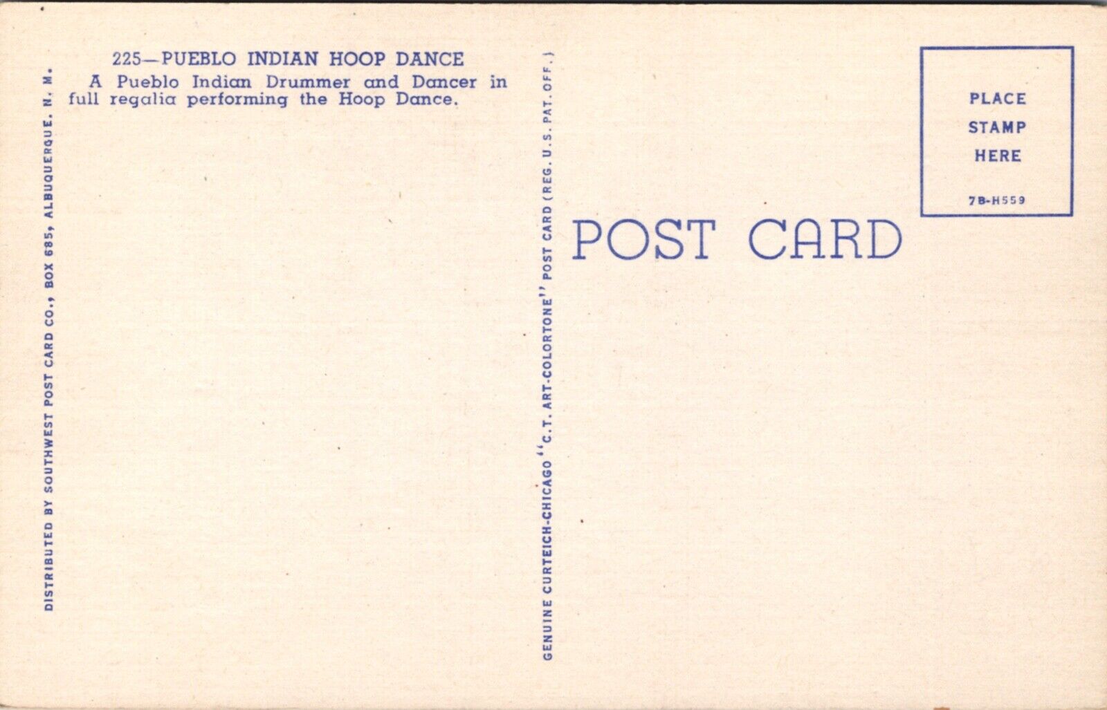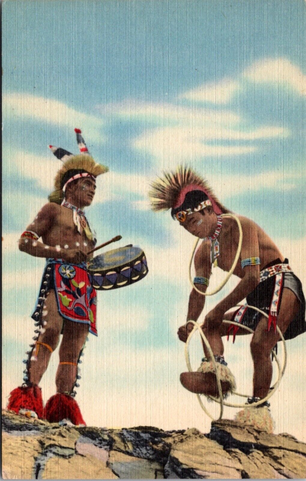 Linen Postcard Pueblo Indian Hoop Dance Drummer Dancer