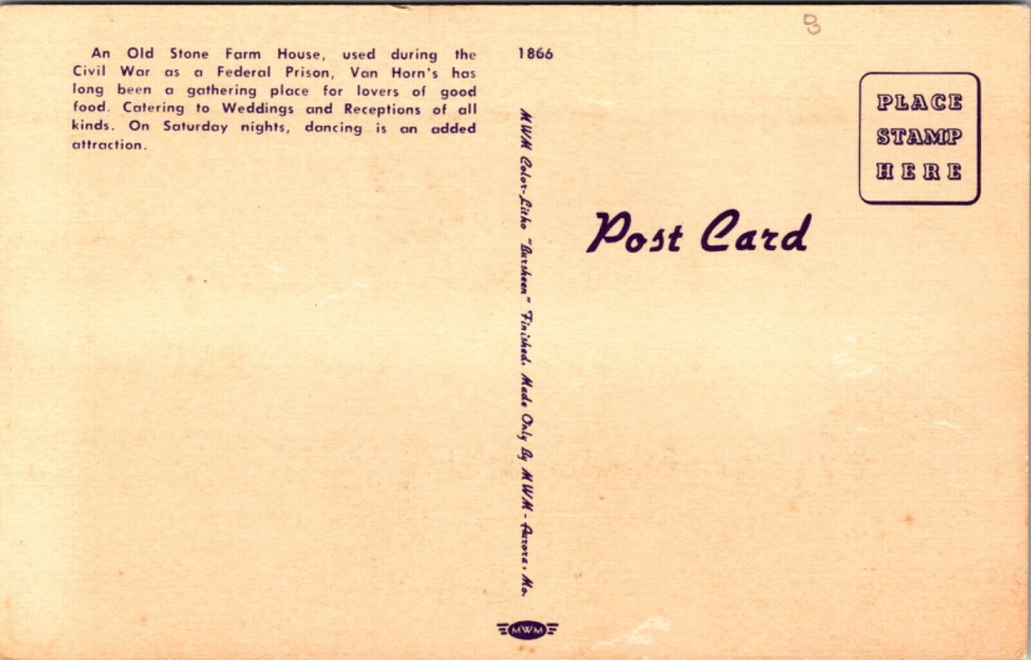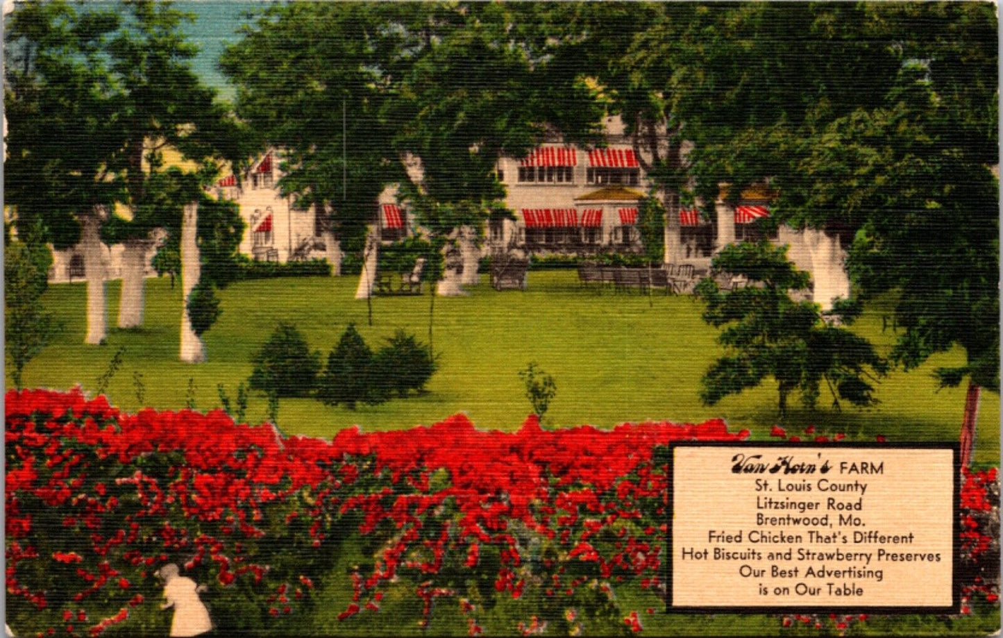 Linen Postcard Van Horn's Farm Restaurant Litzsinger Road Brentwood, Missouri