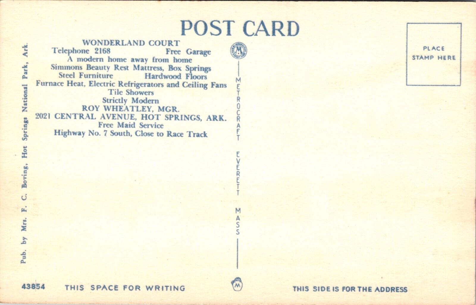 Linen Postcard Wonderland Court 2019-21 Central Avenue in Hot Springs, Arkansas