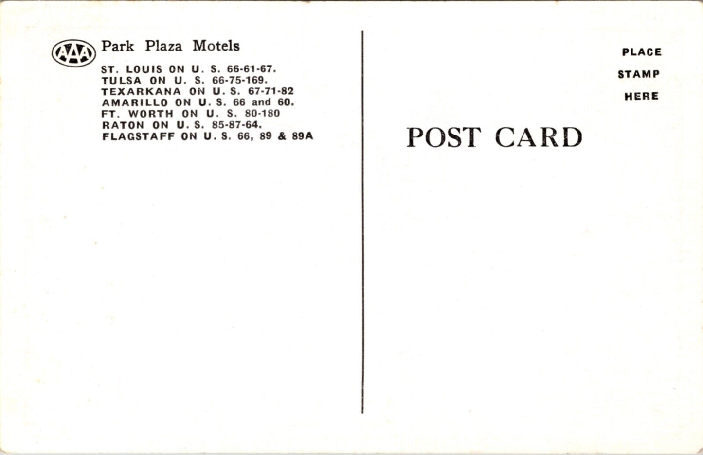 Park Plaza Motels St. Louis Tulsa Texarkana Amarillo Ft. Worth Raton Flagstaff