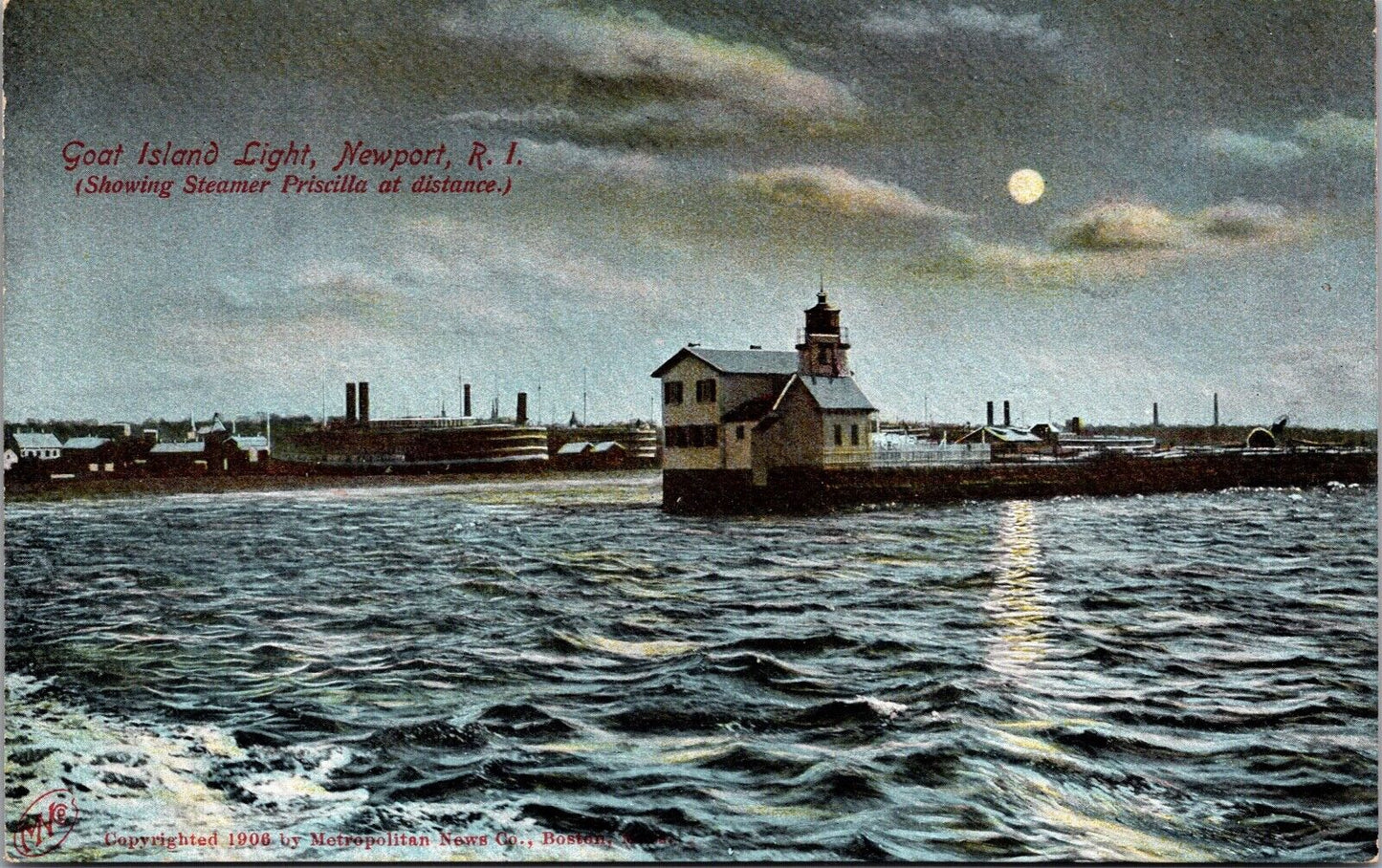 PCGoat Island Light House in Newport, Rhode Island Steamer Priscilla at Distance