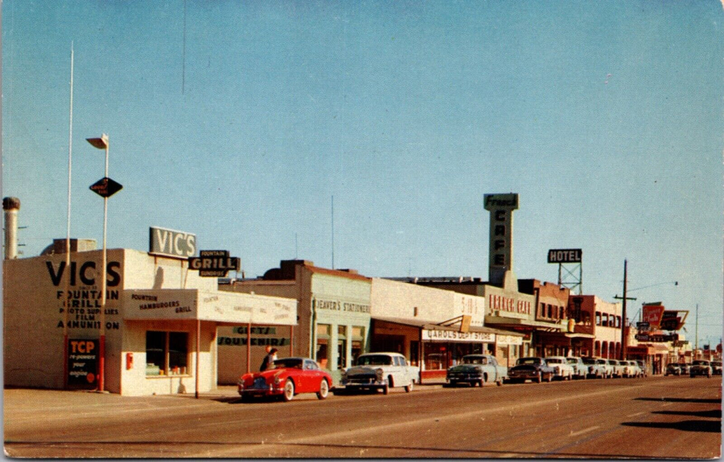 Postcard Automobiles on Highway 6 a Busy Main Street in Mojave, California