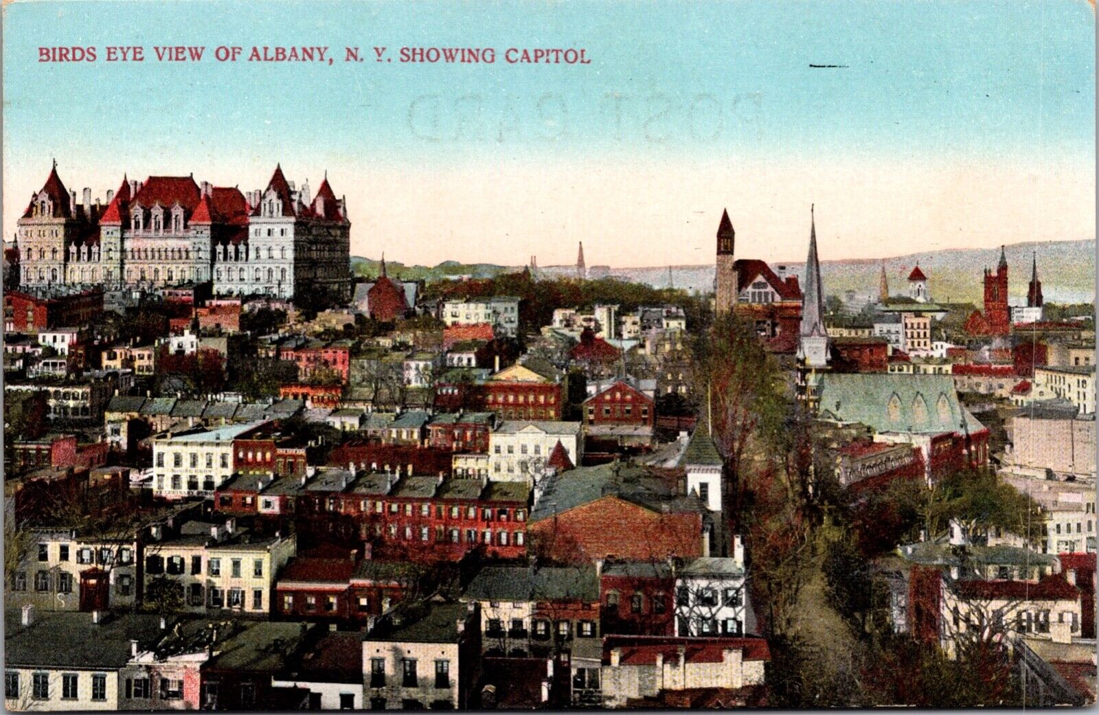 Postcard Birds Eye View of Albany, New York showing Capitol