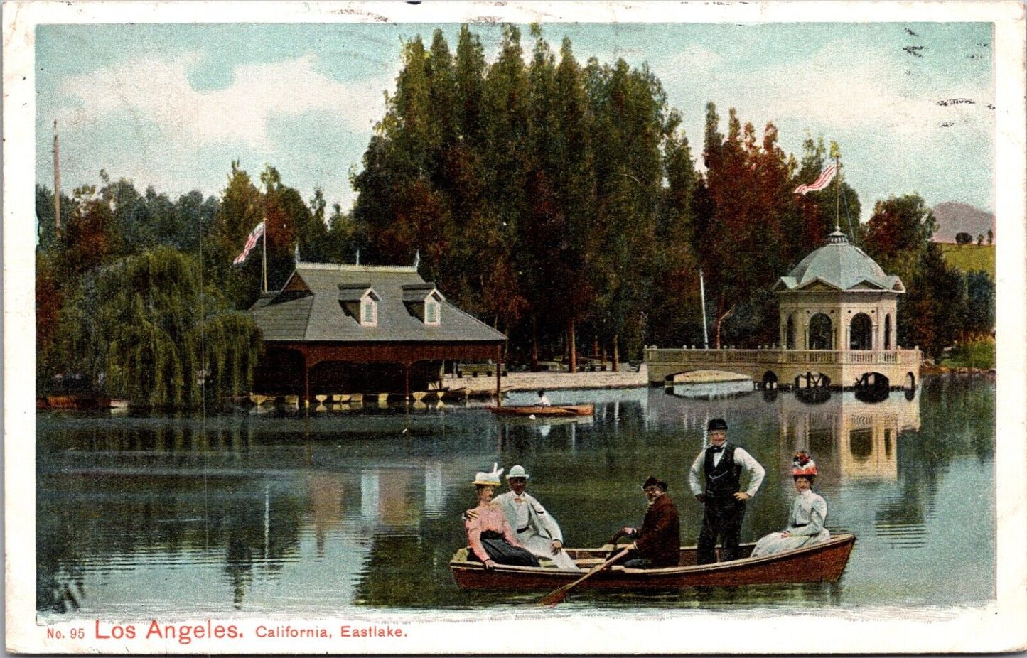 Capture a moment in time with this historical postcard featuring boaters on Eastlake in Los Angeles, California. Dated from the Divided Back Era (1907-1915), this original lithograph print by Chas. Weidner offers a glimpse into early 20th-century community life and nautical adventures.