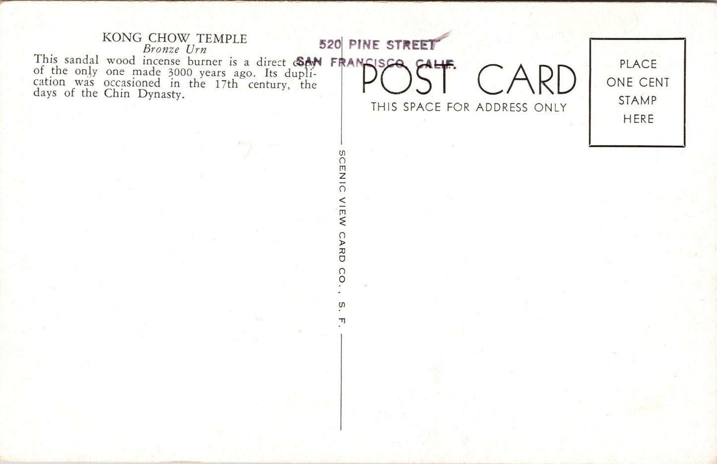 Postcard Bronze Urn at Kong Chow Temple in San Francisco, California