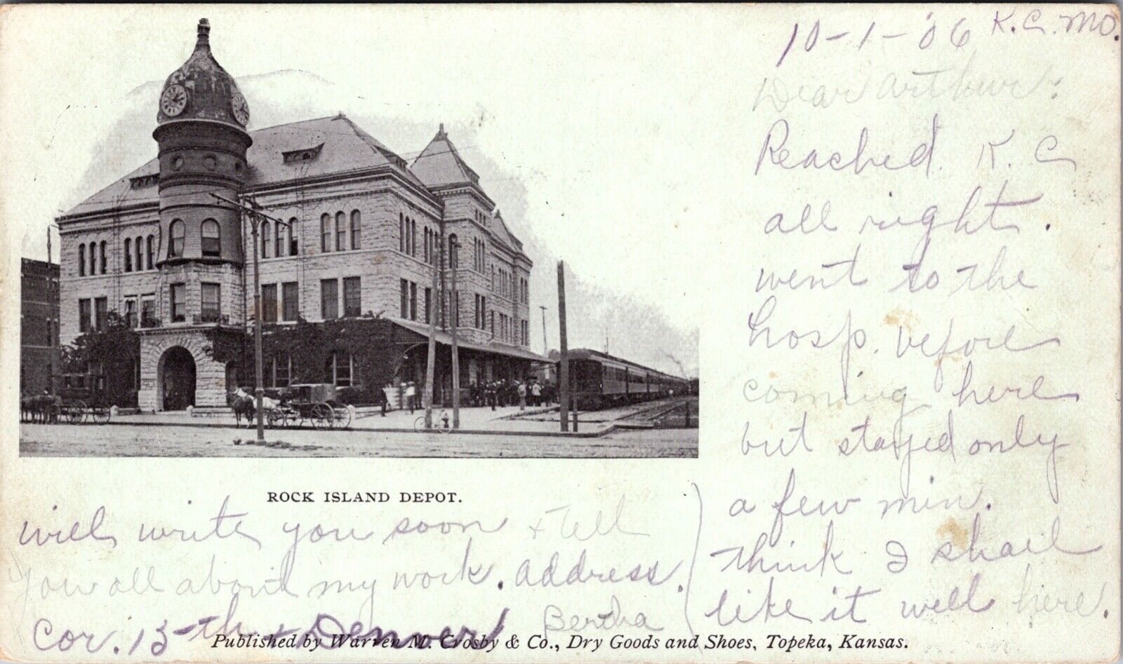 Postcard Chicago, Rock Island and Pacific Railroad Depot, Topeka, Kansas