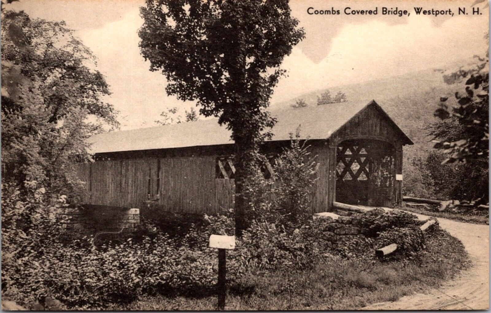 Postcard Coombs Covered Bridge in Westport, New Hampshire