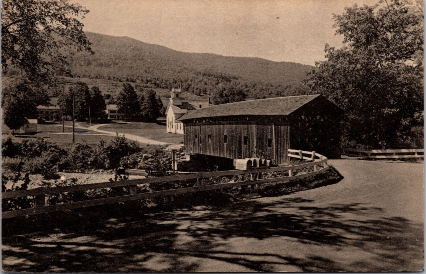 Postcard Covered Bridge Green Mountain at West Arlington Vermont Norman Rockwell