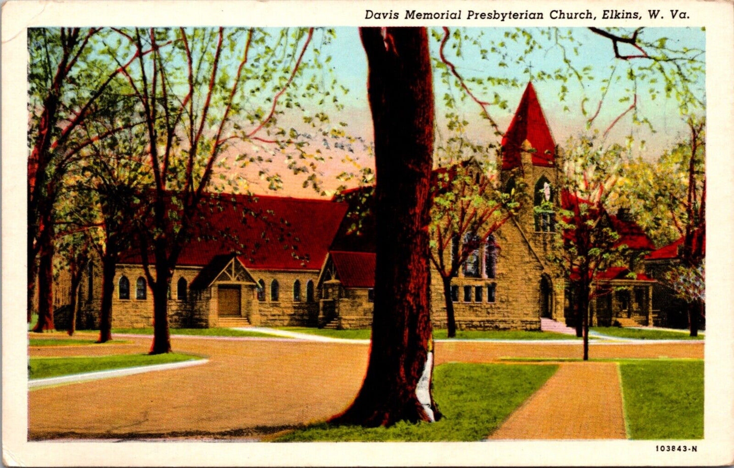 Postcard Davis Memorial Presbyterian Church in Elkins, West Virginia