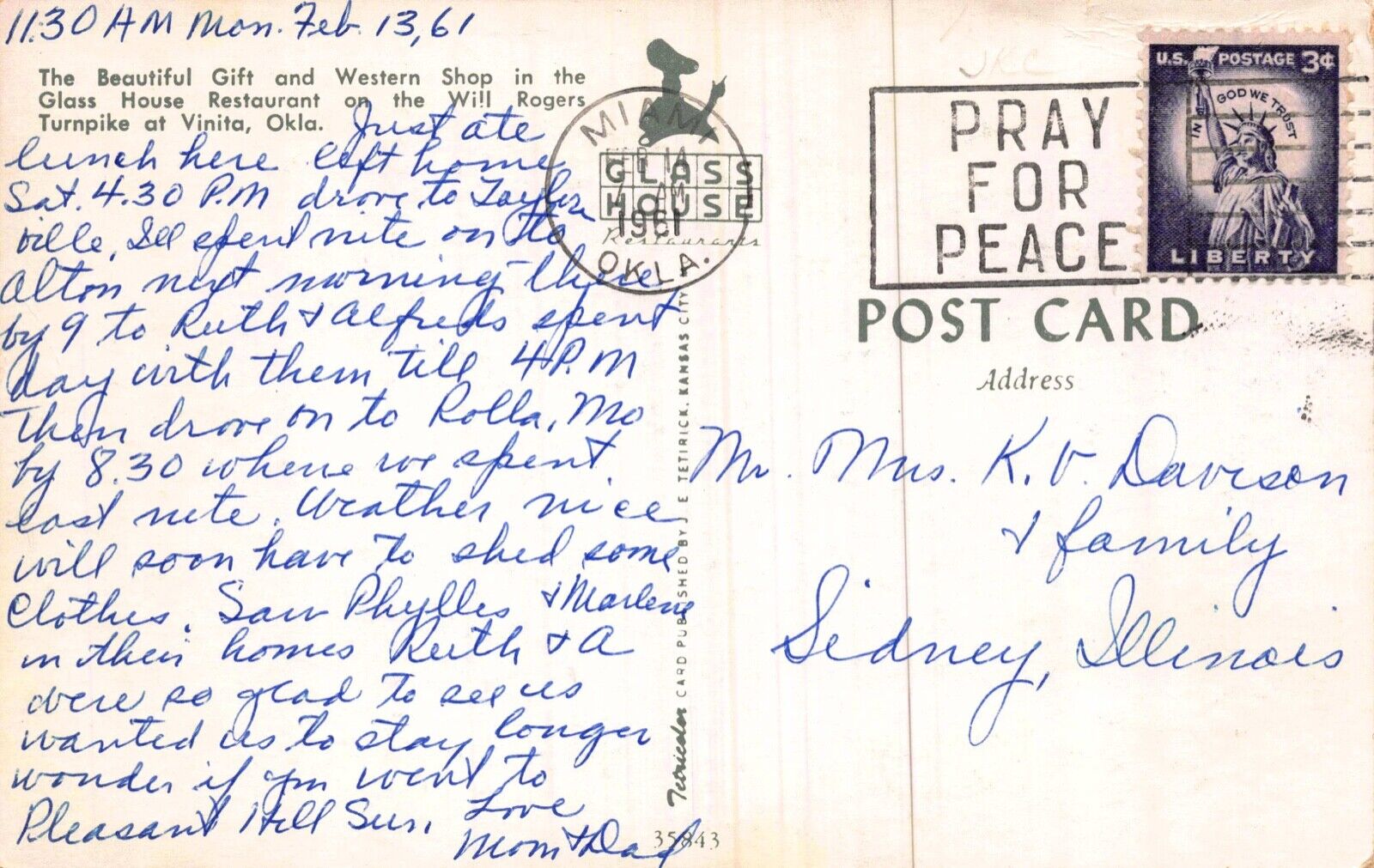 Postcard Gift and Western Shop at Glass House Restaurant Vinita, Oklahoma
