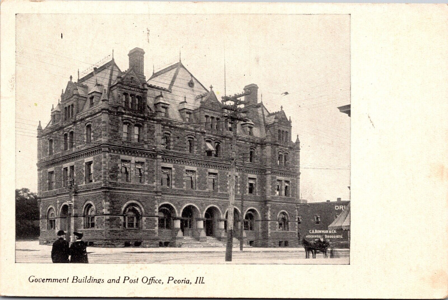 Postcard Government Buildings and Post Office in Peoria, Illinois