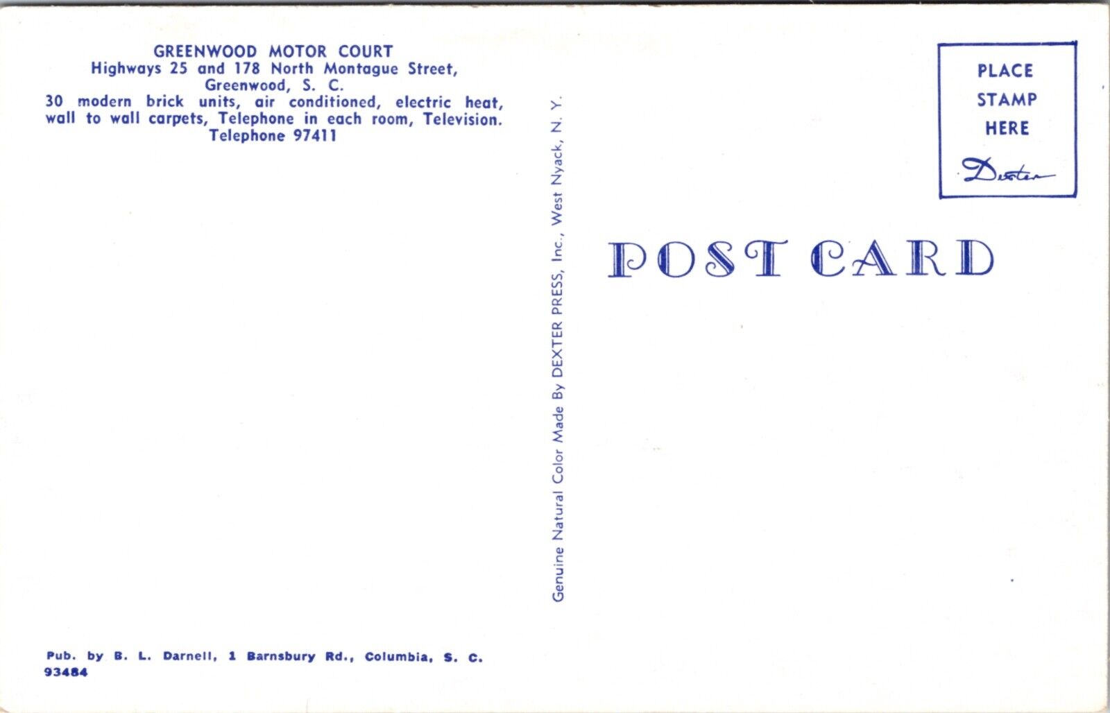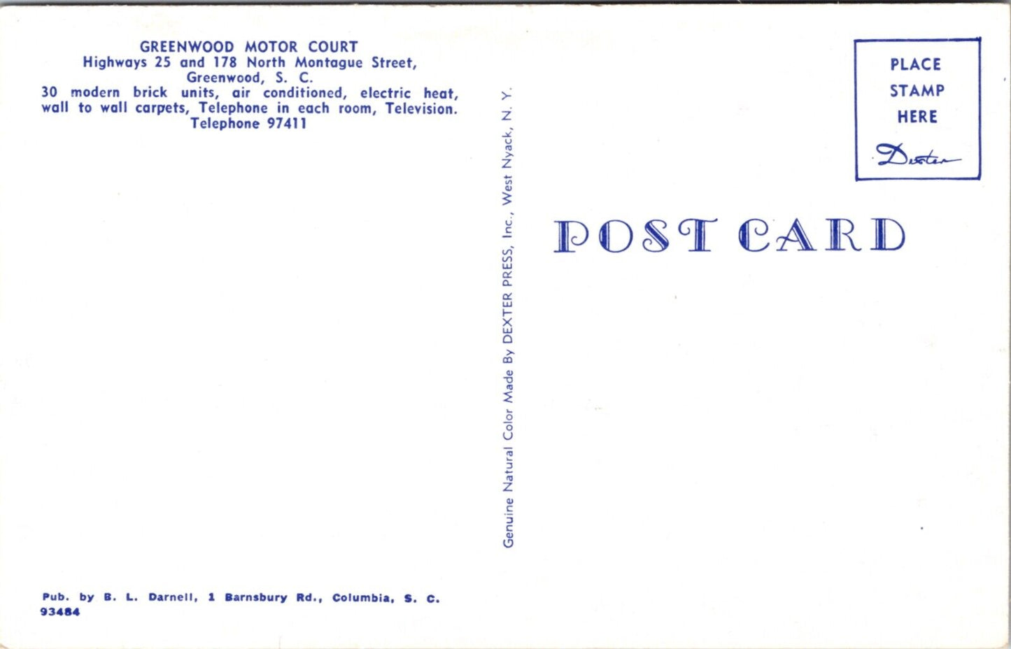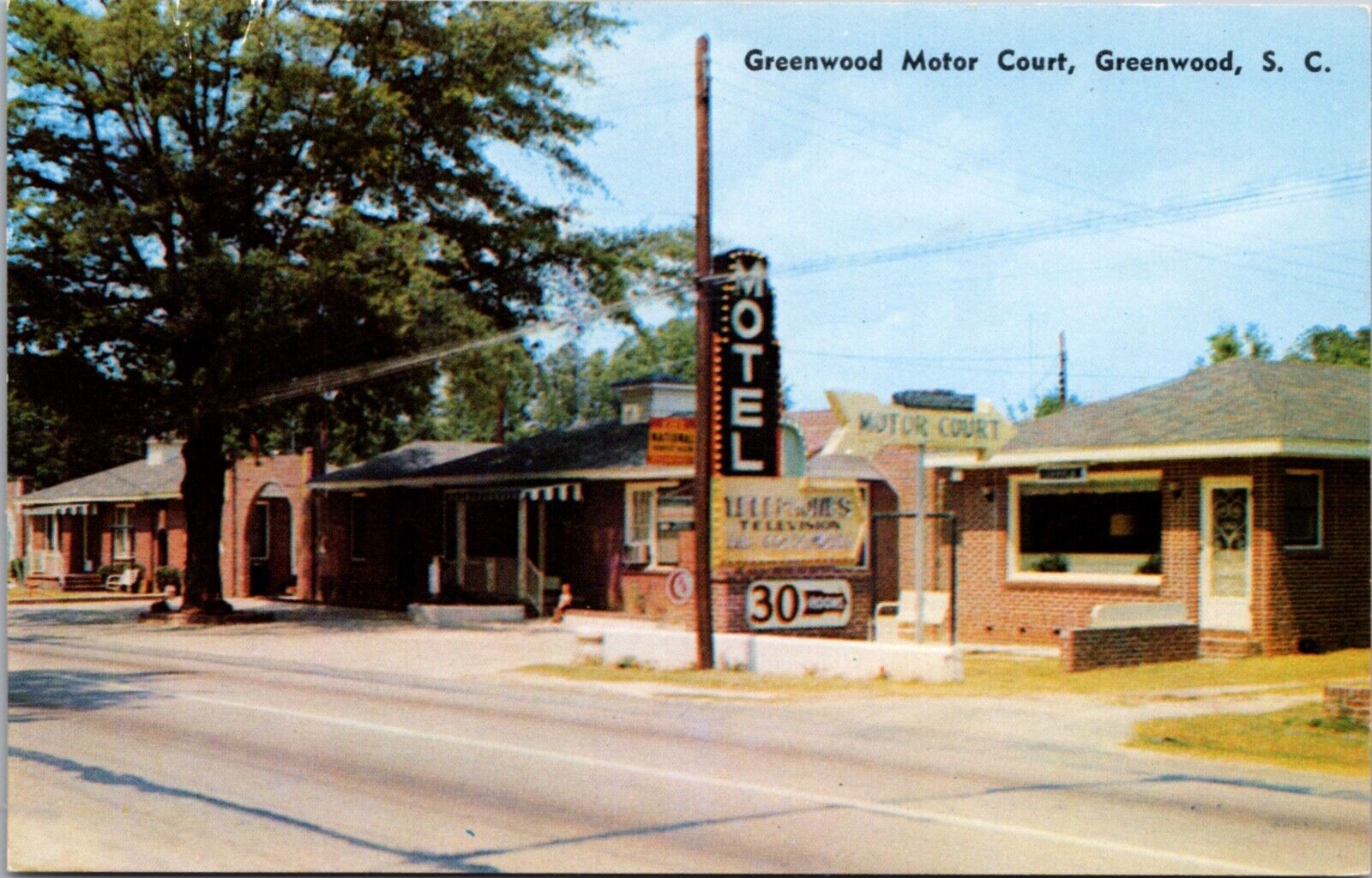 Postcard Greenwood Motor Court Highways 25 and 178 in Greenwood, South Carolina