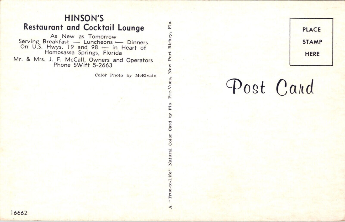 Postcard Hinson's Restaurant and Cocktail Lounge in Homosassa Springs, Florida