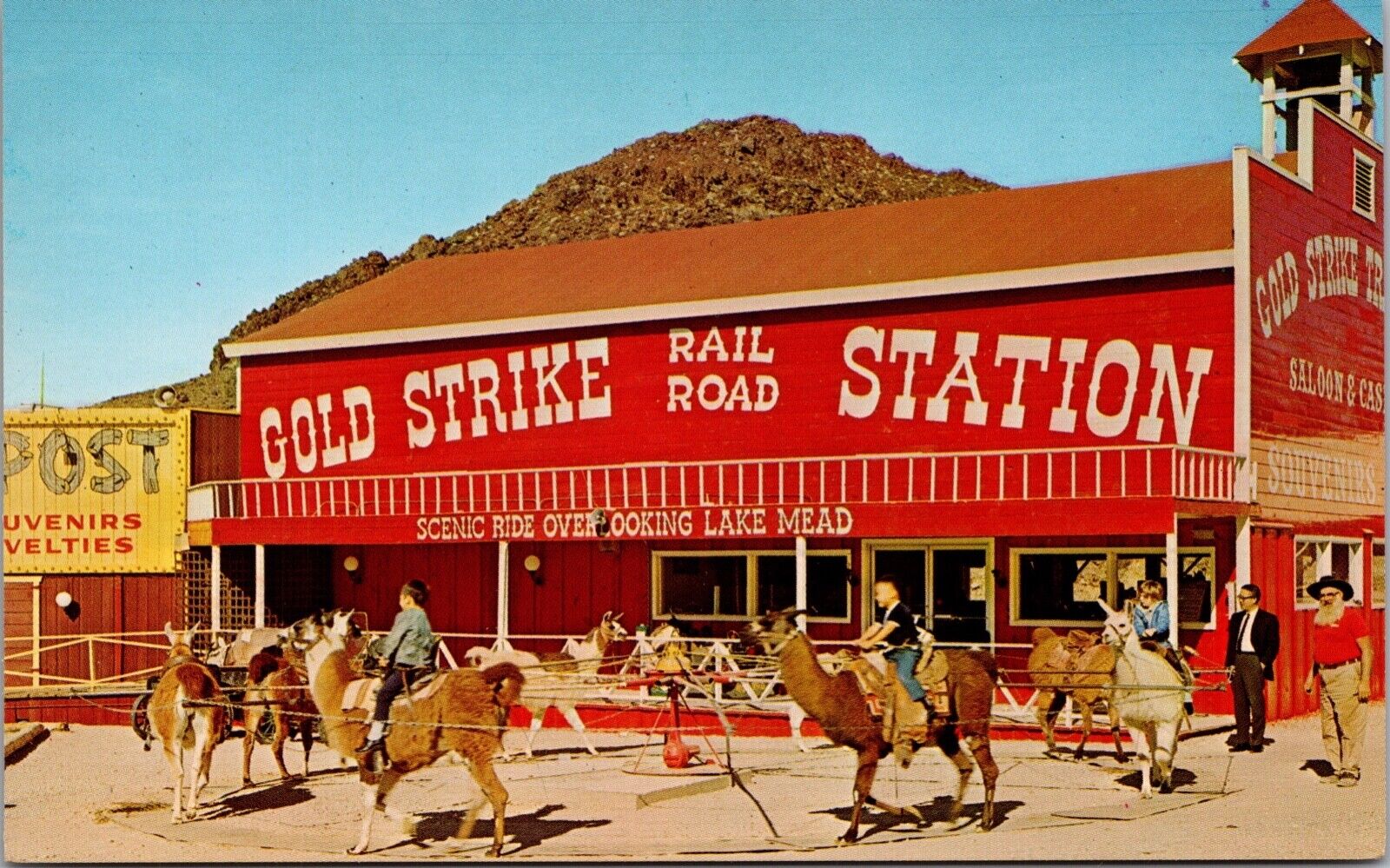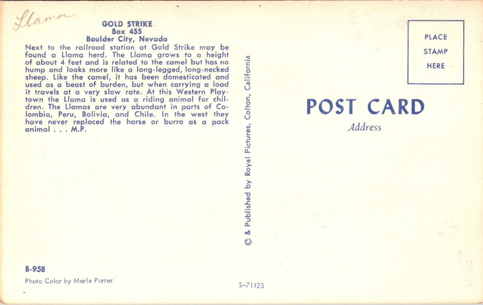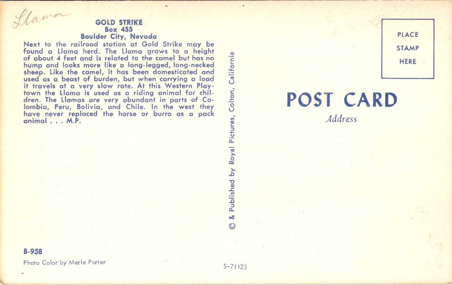 Postcard Llama Rides at Gold Strike Railroad Station Boulder City, Nevada
