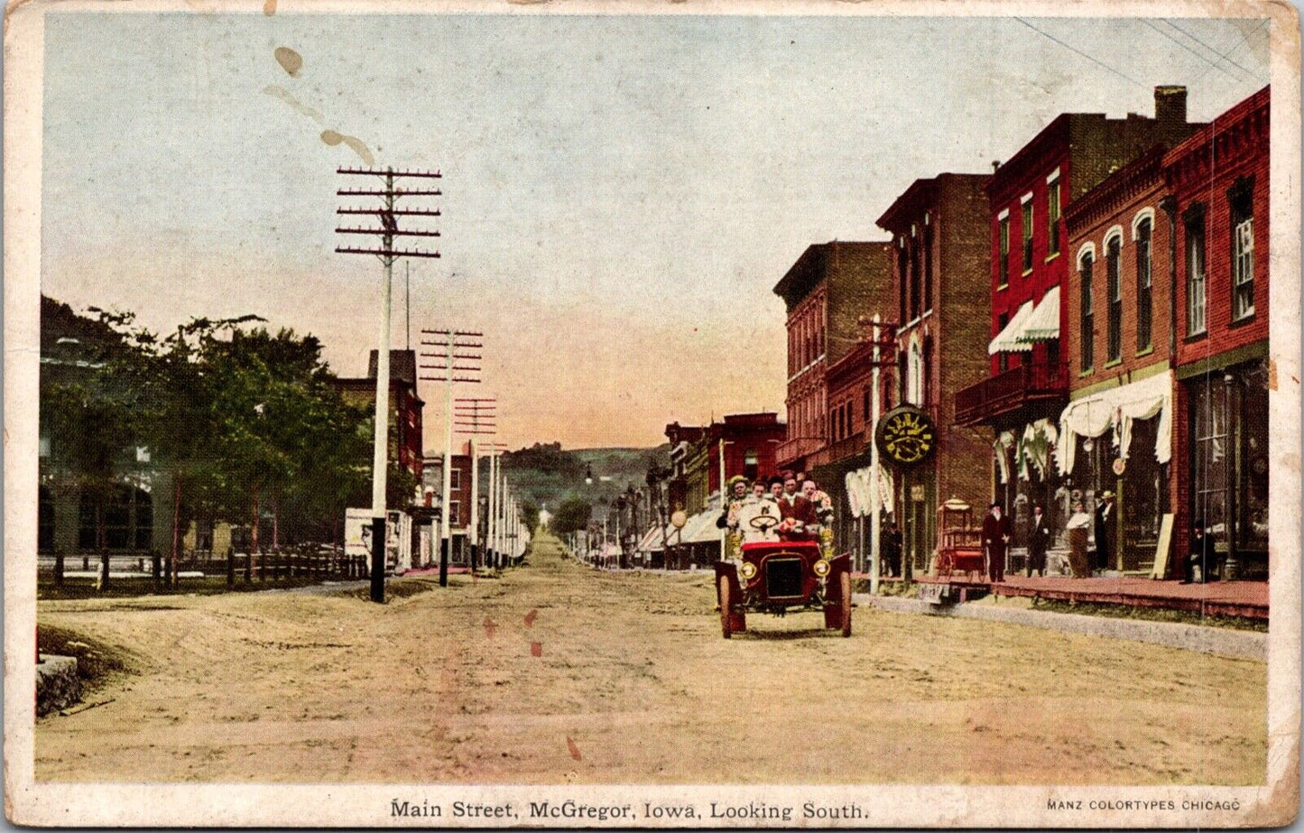 Postcard Main Street Looking South in McGregor, Iowa