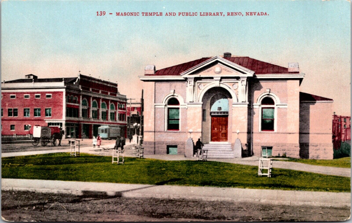 Postcard Masonic Temple and Public Library in Reno, Nevada