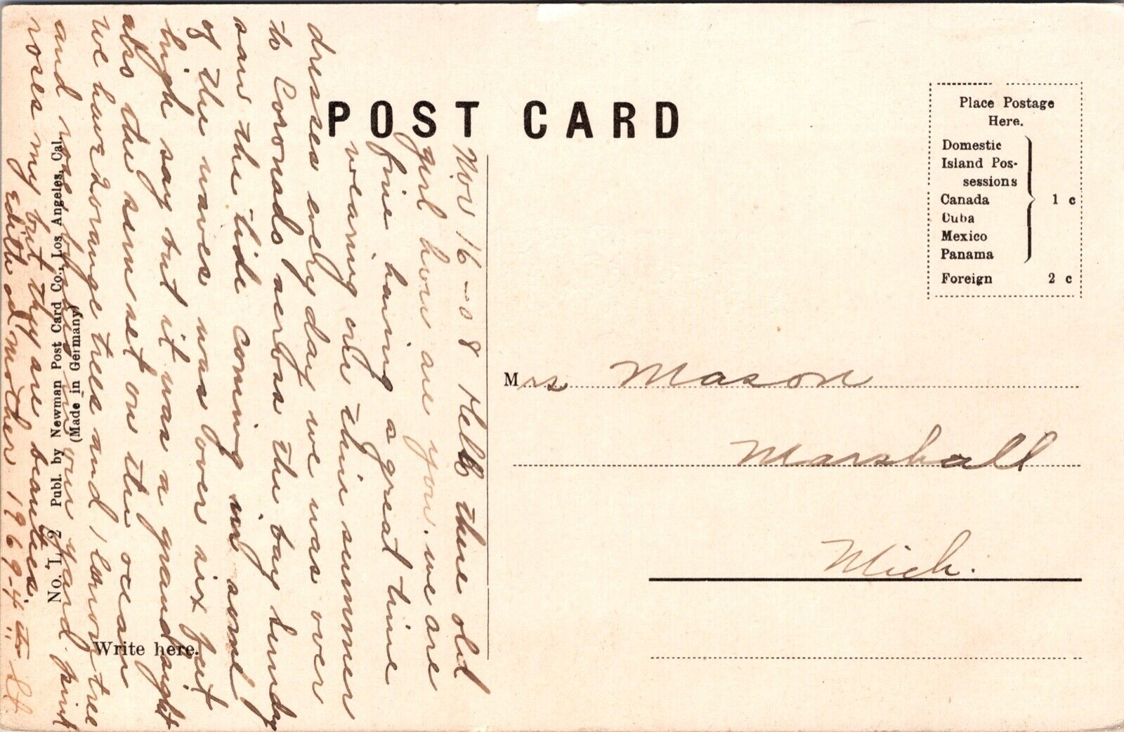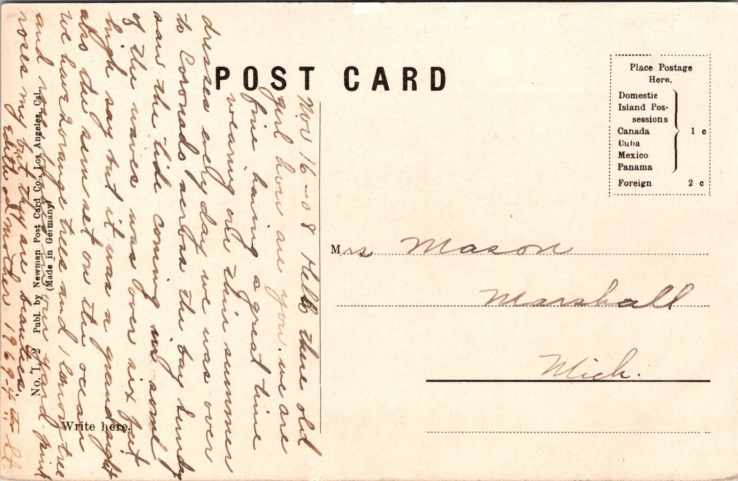 Postcard Mission Cliff Pavilion in San Diego, California