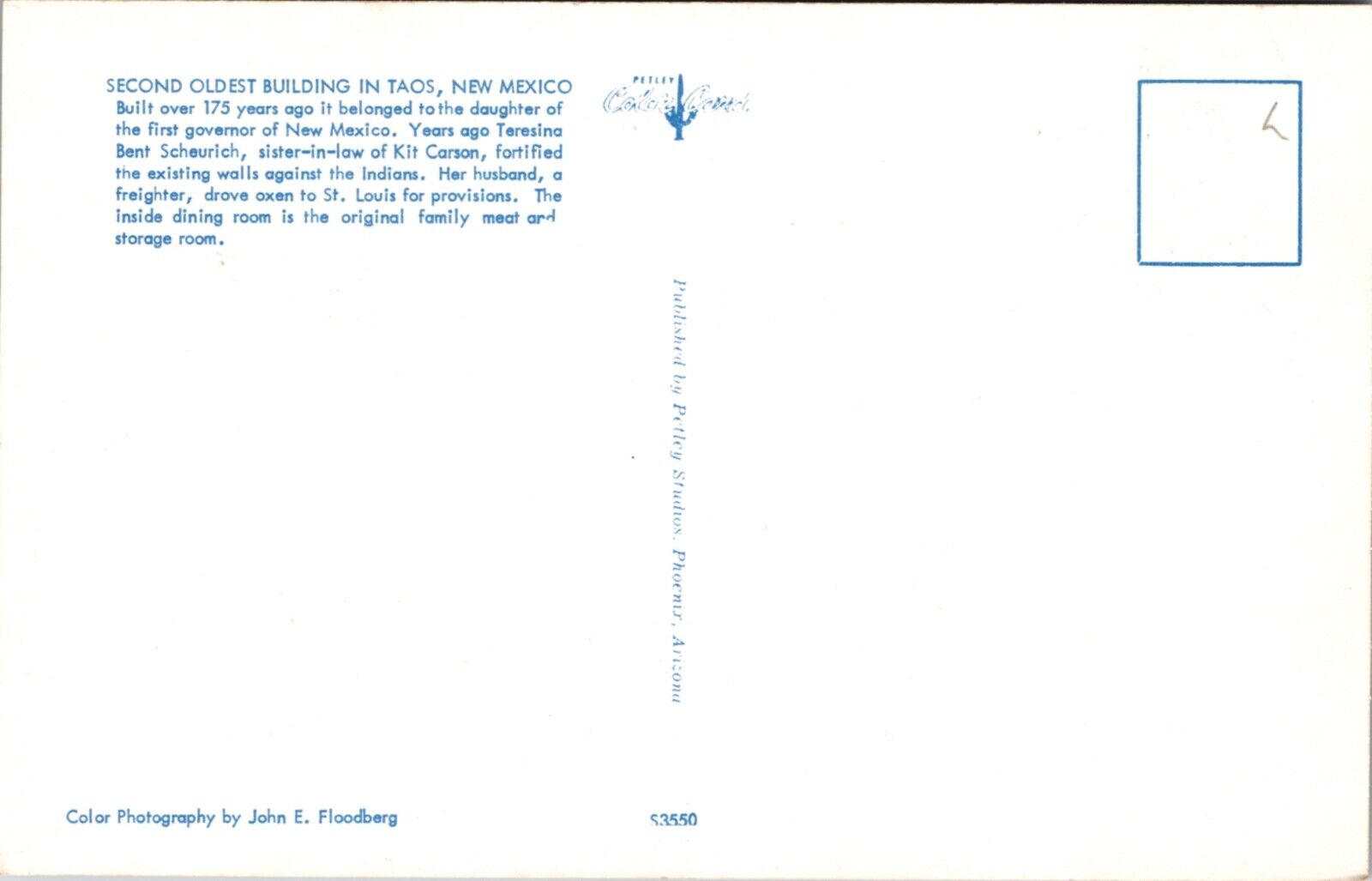 Postcard Second Oldest Building in Taos, New Mexico El Patio Grill Restaurant