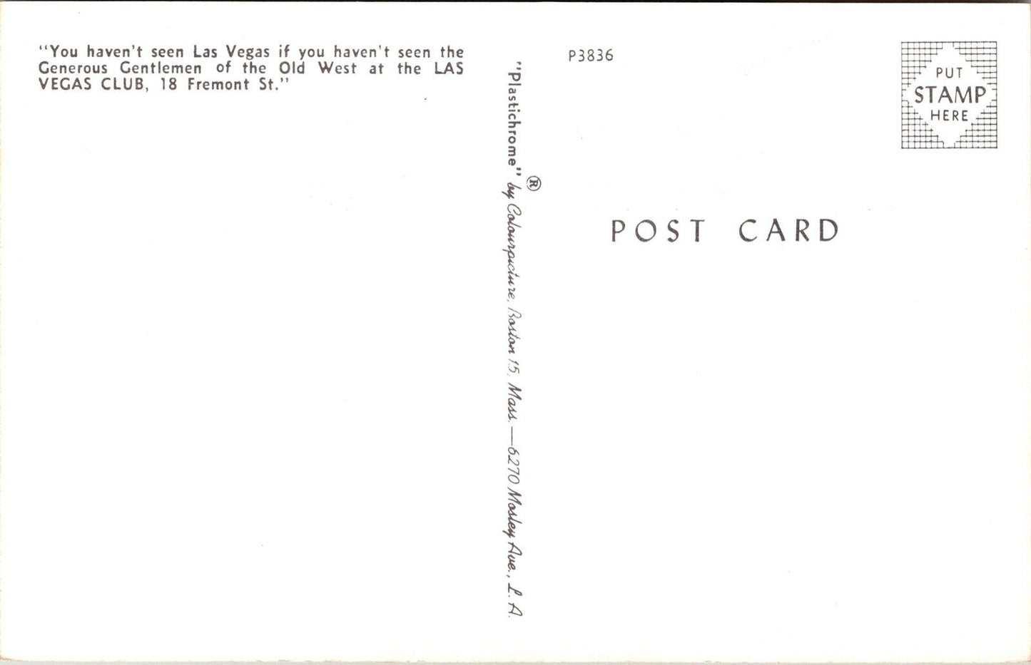 Postcard The House of Jack Pots Las Vegas Club Downtown Las Vegas, Nevada