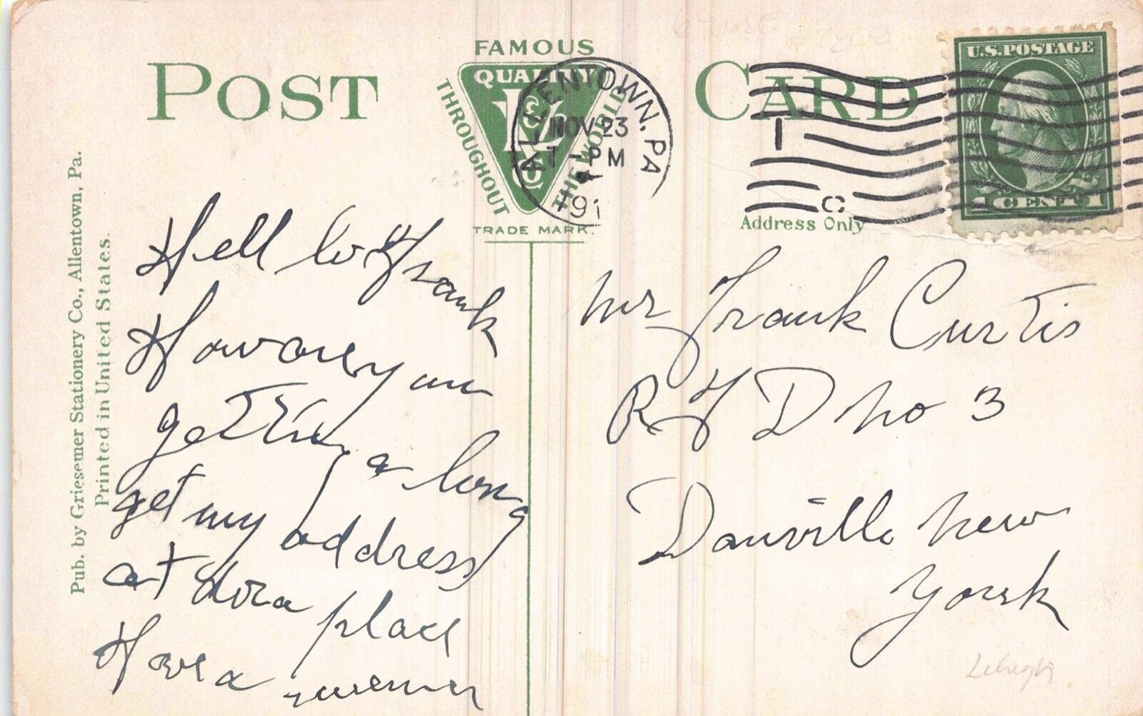 Postcard The Waterworks in Allentown, Pennsylvania