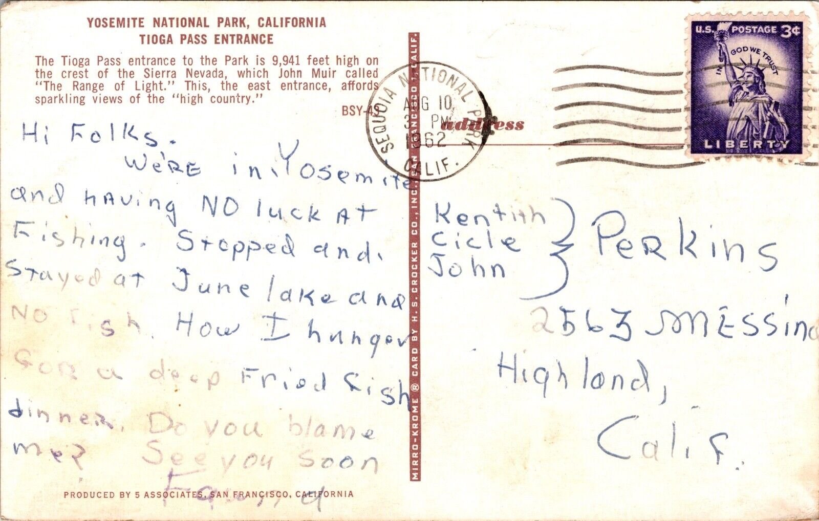 Postcard Tioga Pass Entrance at Yosemite National Park, California