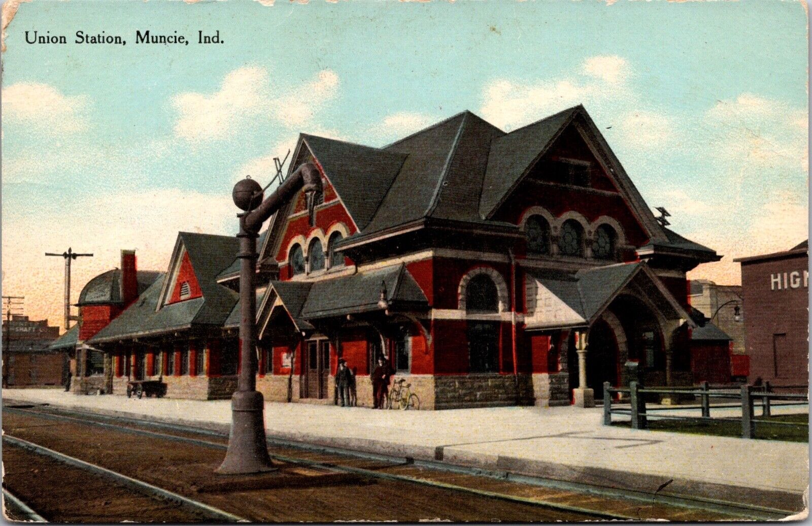 Postcard Union Railroad Station Depot in Muncie, Indiana