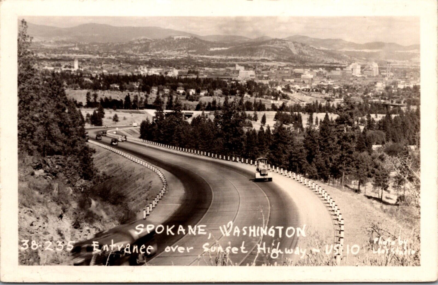 Real Photo Postcard Entrance over Sunset Highway US 101 in Spokane, Washington