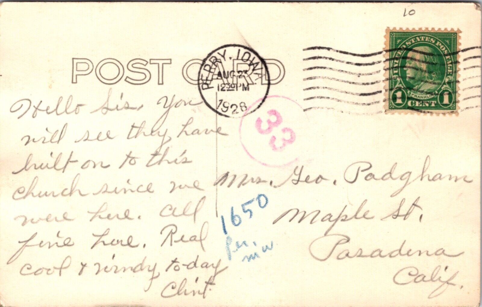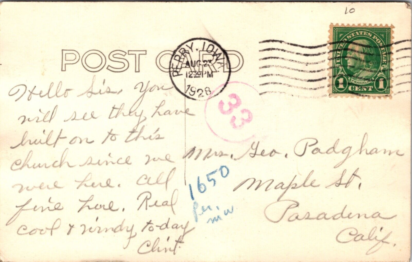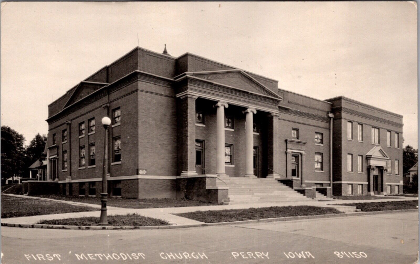 Real Photo Postcard First Methodist Church in Perry, Iowa
