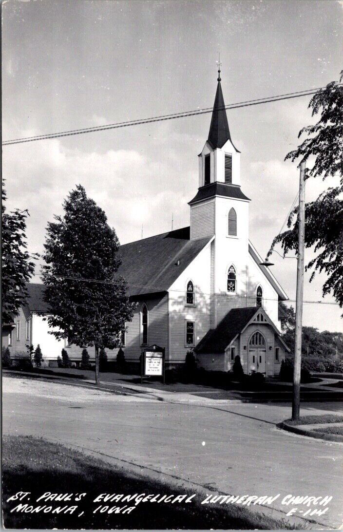Real Photo Postcard St. Paul's Evangelical Lutheran Church in Monona, Iowa