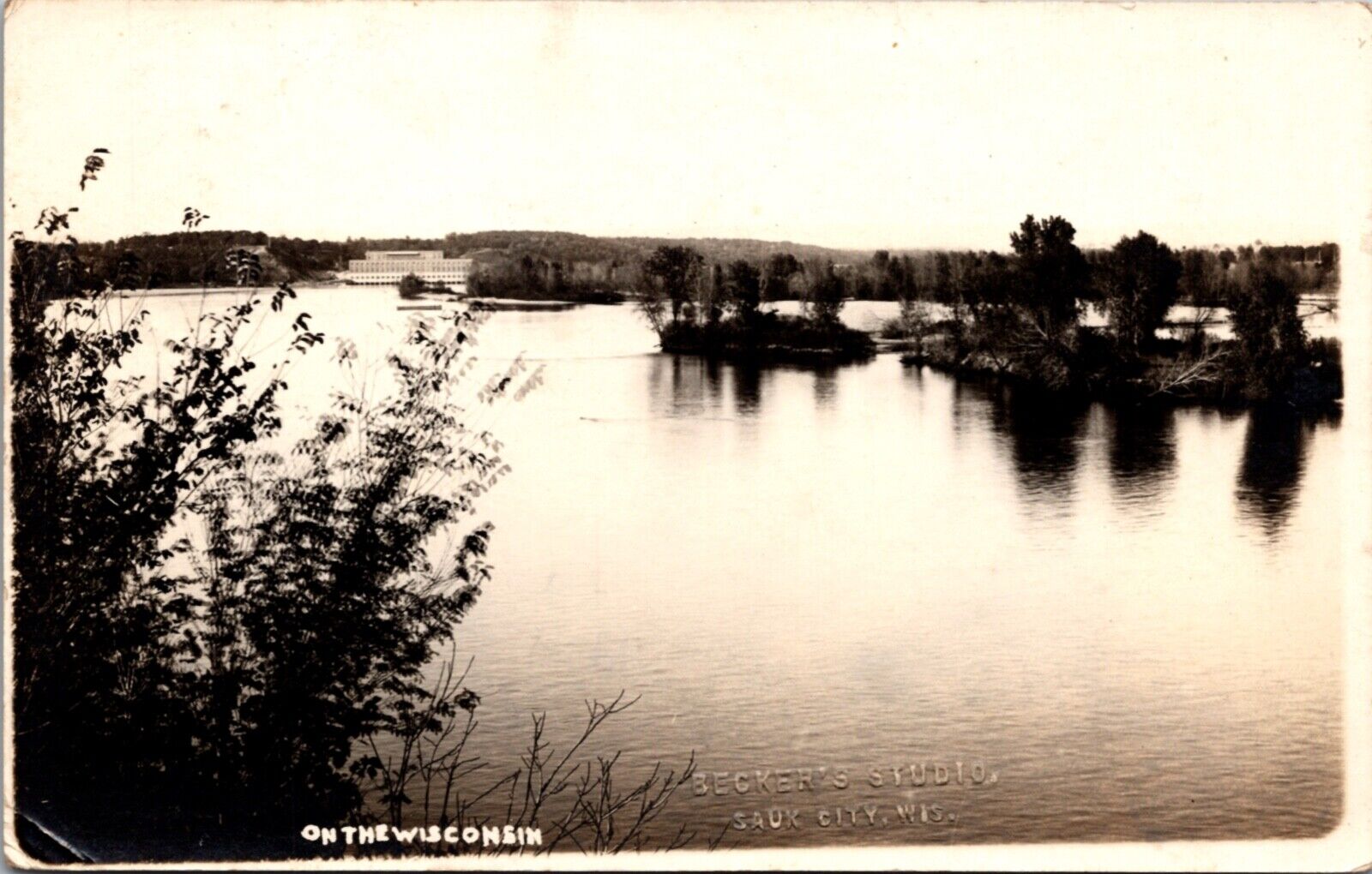 Real Photo Postcard View on the Wisconsin in Sauk City, Wisconsin