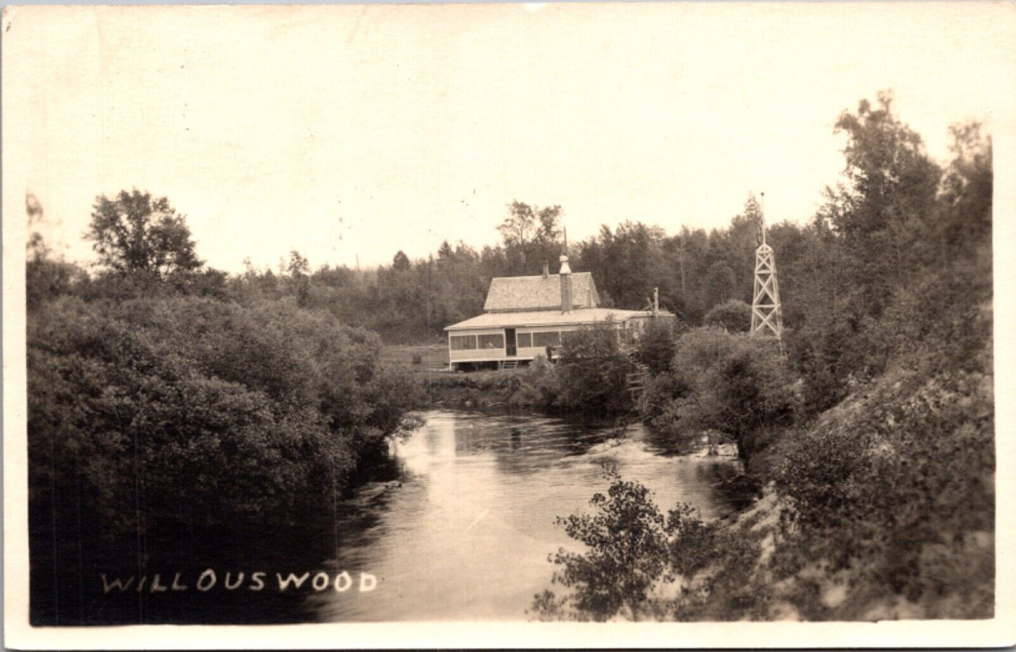 Real Photo Postcard Willouswood House on a River Waterway possibly in Michigan