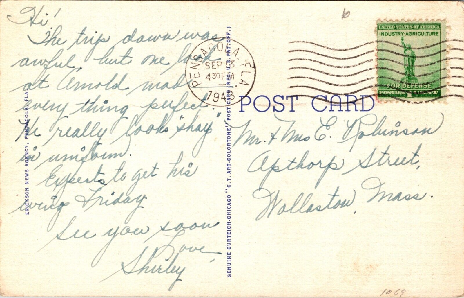 Published by Curt Teich, renowned for quality postcards, this piece is an original and comes from a single-unit set. The postcard is standard size (5.5 x 3.5 in), has a stamp, and is made of paper material. It is an ideal collectible for enthusiasts of military memorabilia, cities and towns, and aerial views.